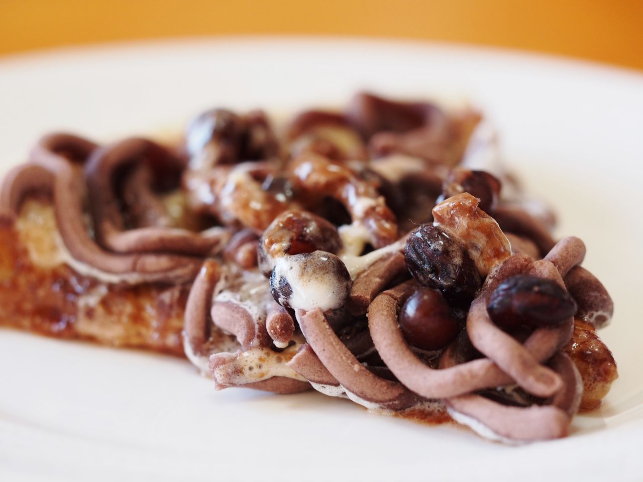 エスプレッソのほろ苦さとチョコレートの甘味、そしてナッツの香りが相まって食べ応えのある美味しいドルチェピッツァになり、甘いもの好きの方には間違いなしの一品でもあります。